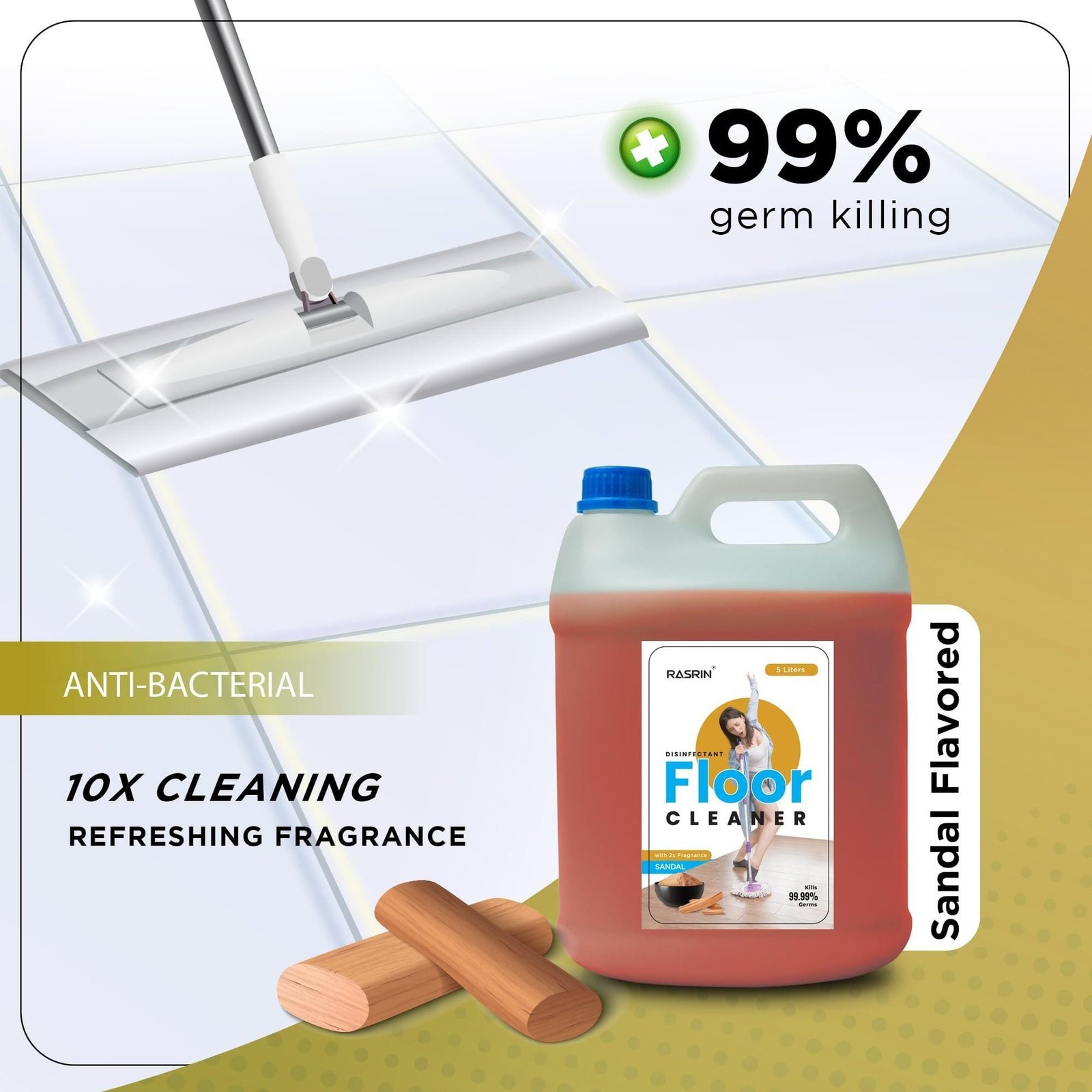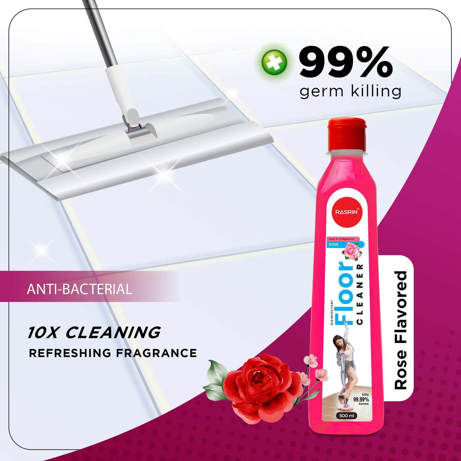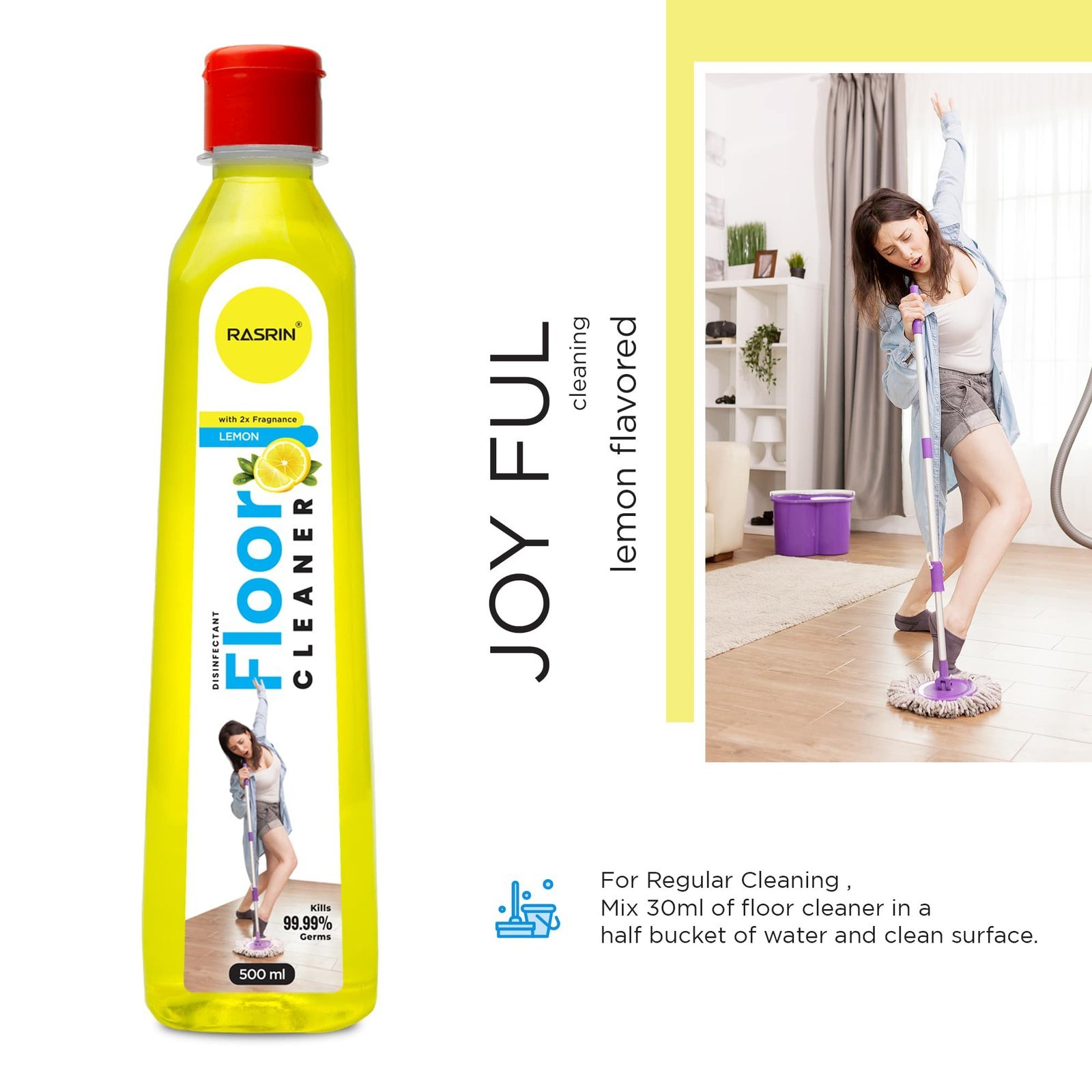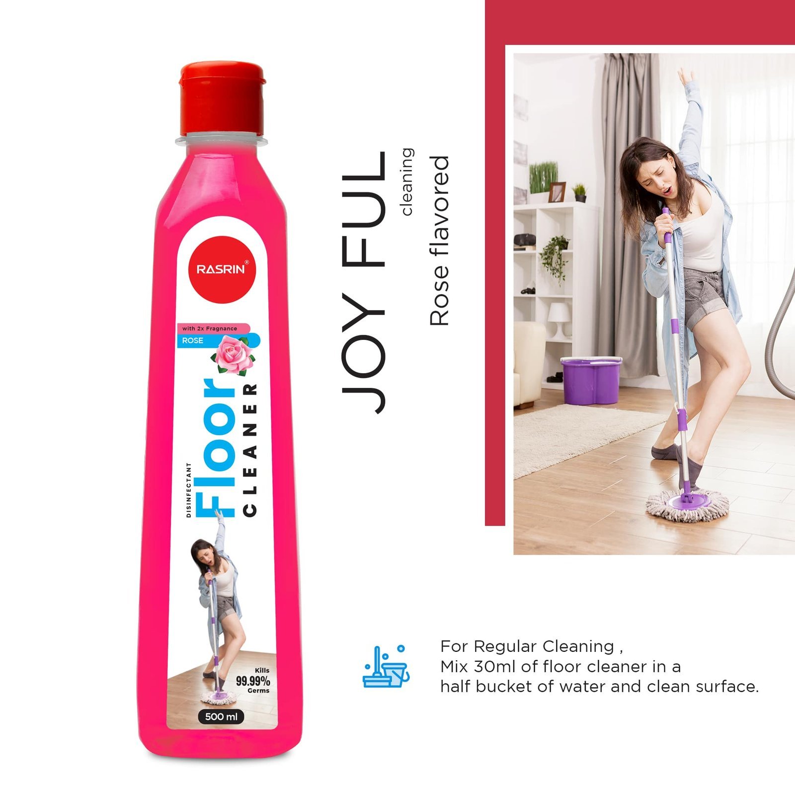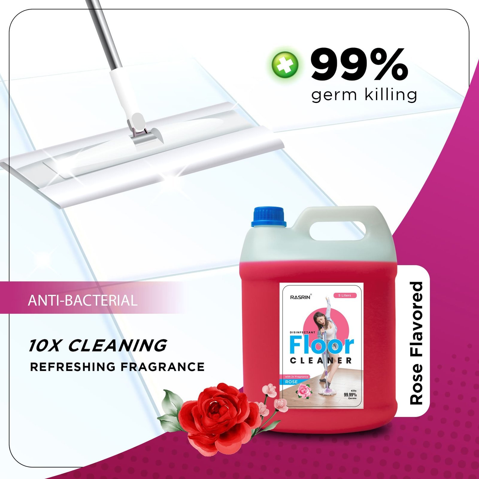 Introducing our brand new floor cleaning liquid Rasrin Floor Cleaner which is a Rose, Sandal and Lemon extract. It contains the unique formula of Rose, Sandal, and Lemon that kills 99.9% of Bacteria and Viruses. Rasrin Floor Cleaner helps in the removal of tough stains and leaves a pleasant natural fragrance. Our floor cleaners’ natural formulation helps in keeping your hands safe. Can be used on a variety of surfaces like ceramic, marble, granite, etc.