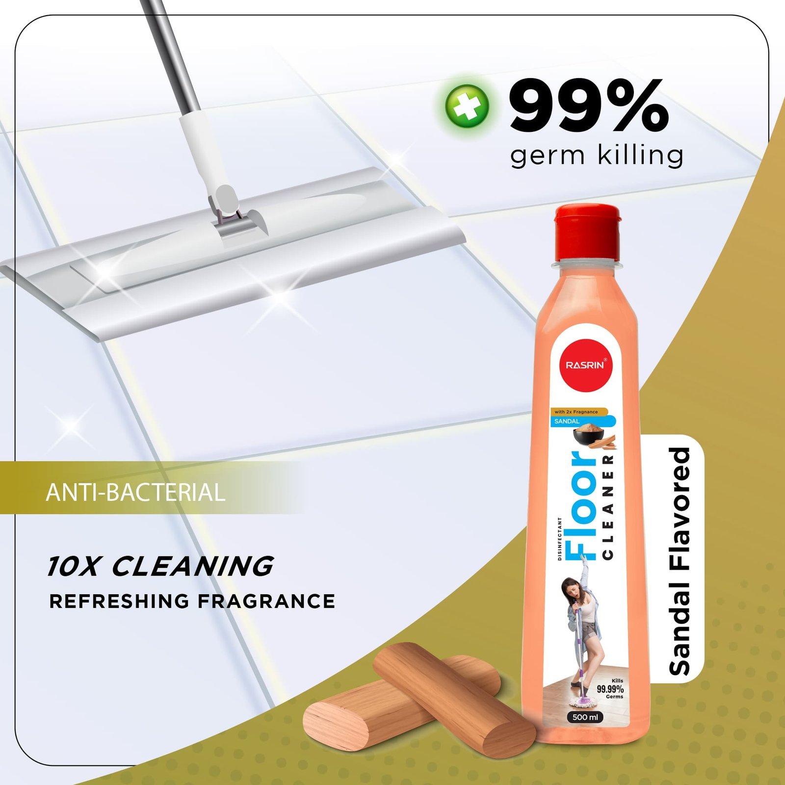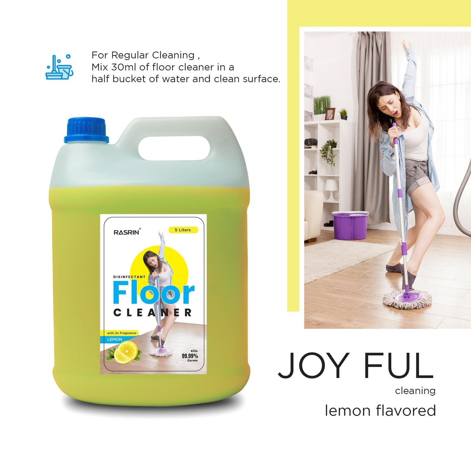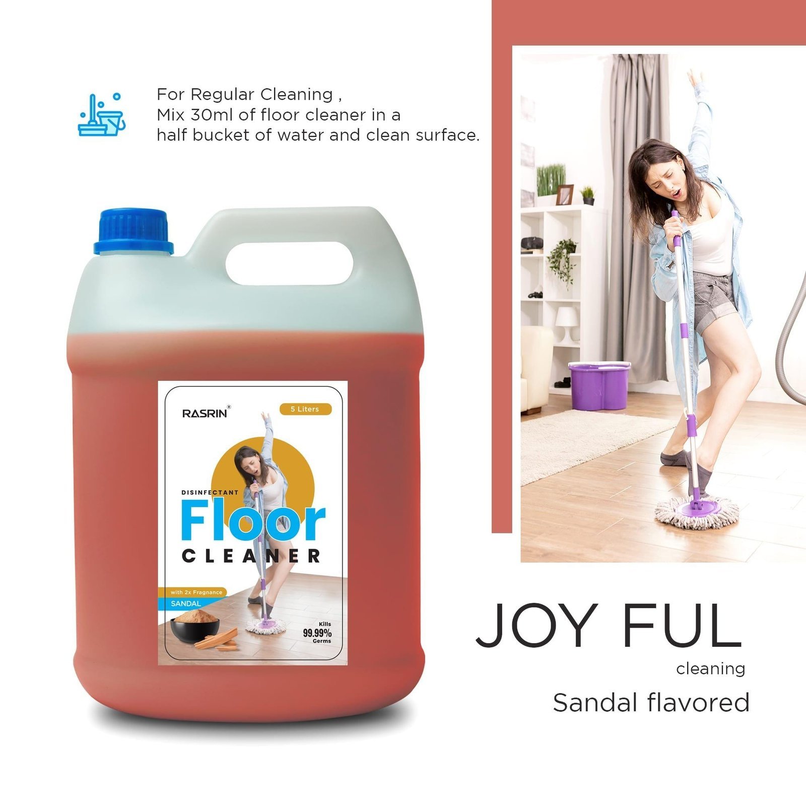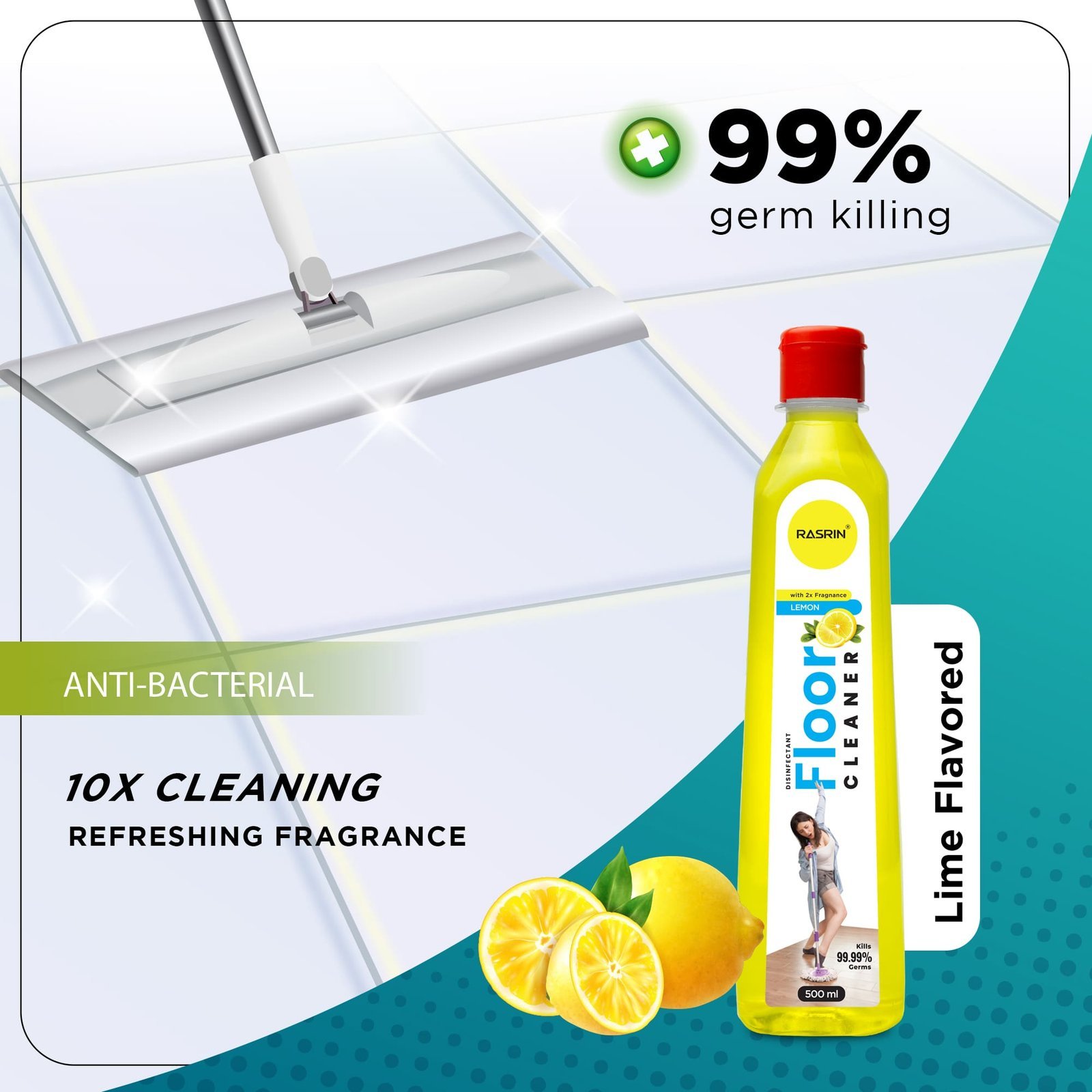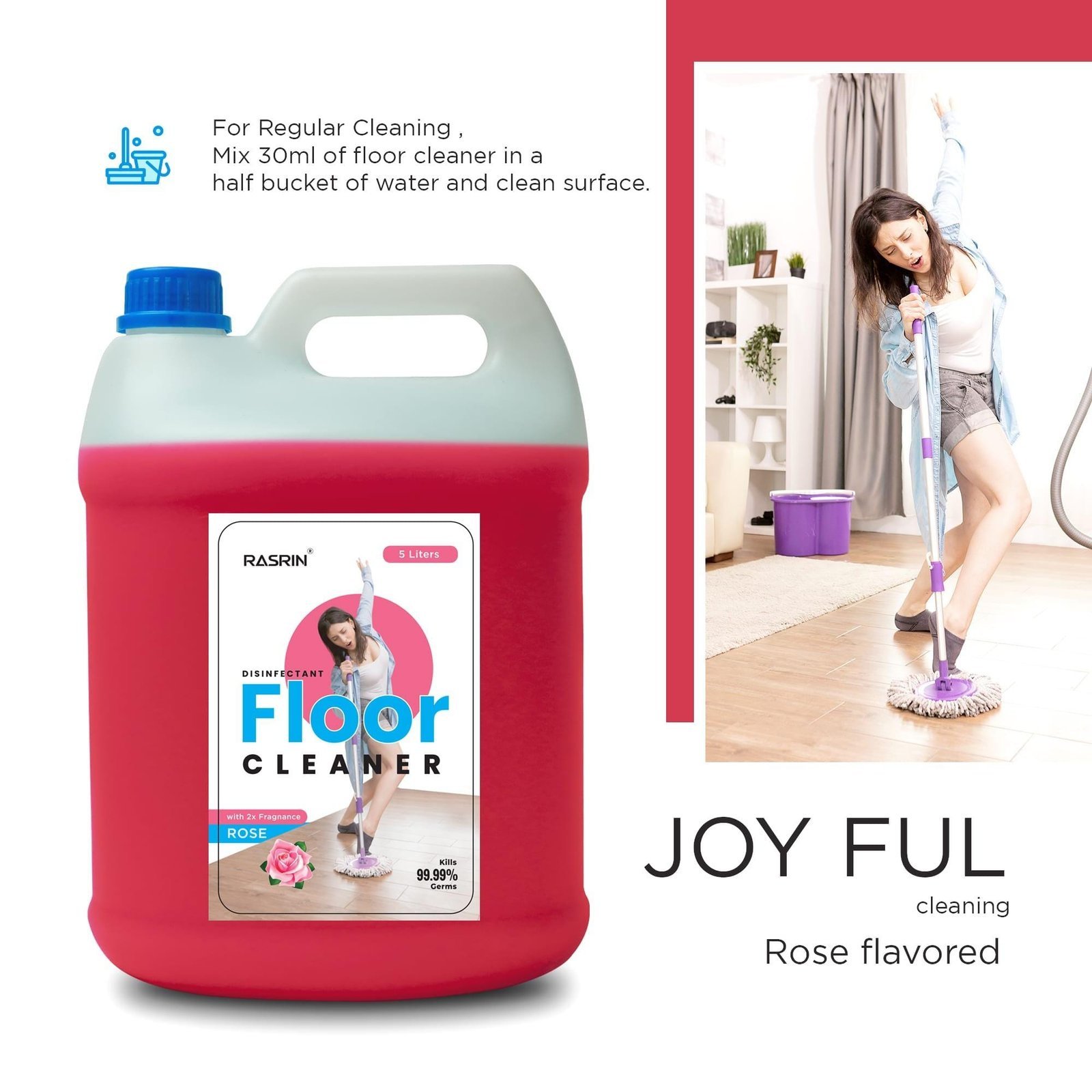 Introducing our brand new floor cleaning liquid Rasrin Floor Cleaner which is a Rose, Sandal and Lemon extract. It contains the unique formula of Rose, Sandal, and Lemon that kills 99.9% of Bacteria and Viruses. Rasrin Floor Cleaner helps in the removal of tough stains and leaves a pleasant natural fragrance. Our floor cleaners’ natural formulation helps in keeping your hands safe. Can be used on a variety of surfaces like ceramic, marble, granite, etc.