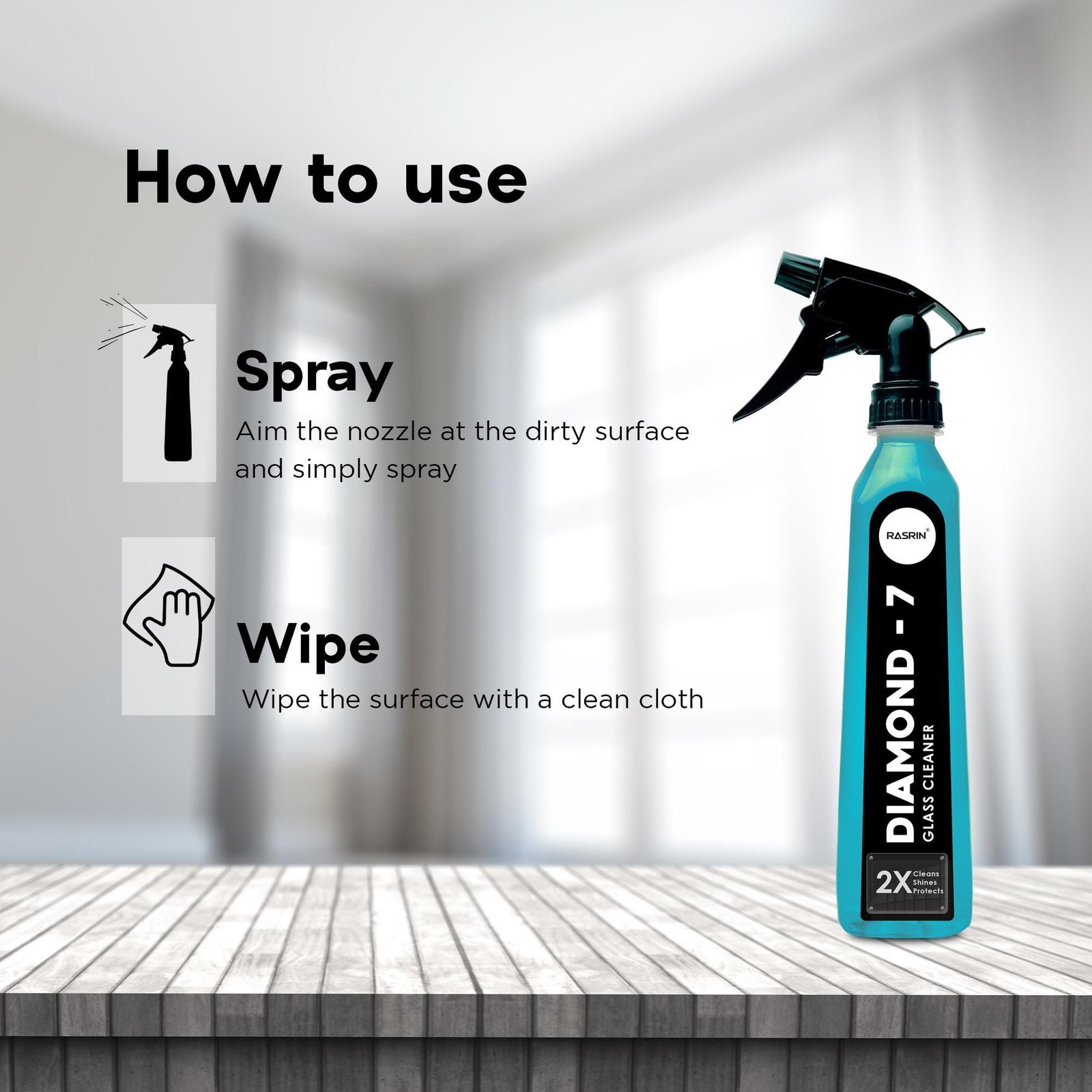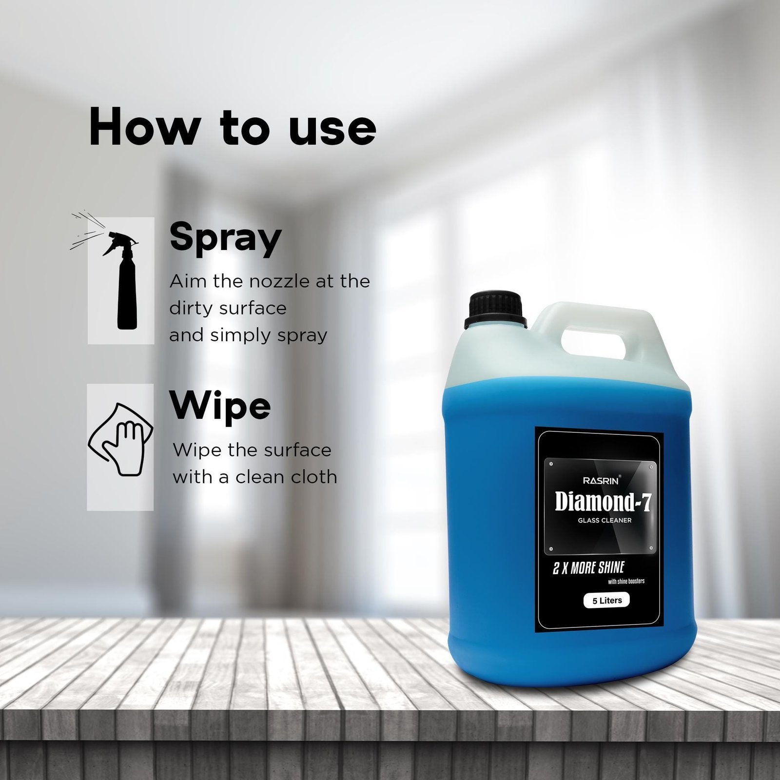 Discover the Ultimate Shine with RASRIN Diamond 7 Glass Cleaner: Are you tired of struggling with streaks and smudges on your windows and glass surfaces? Look no further! Introducing RASRIN Diamond 7 Glass Cleaner – your ticket to spotless, crystal-clear glass that lets you see the world in a whole new light.