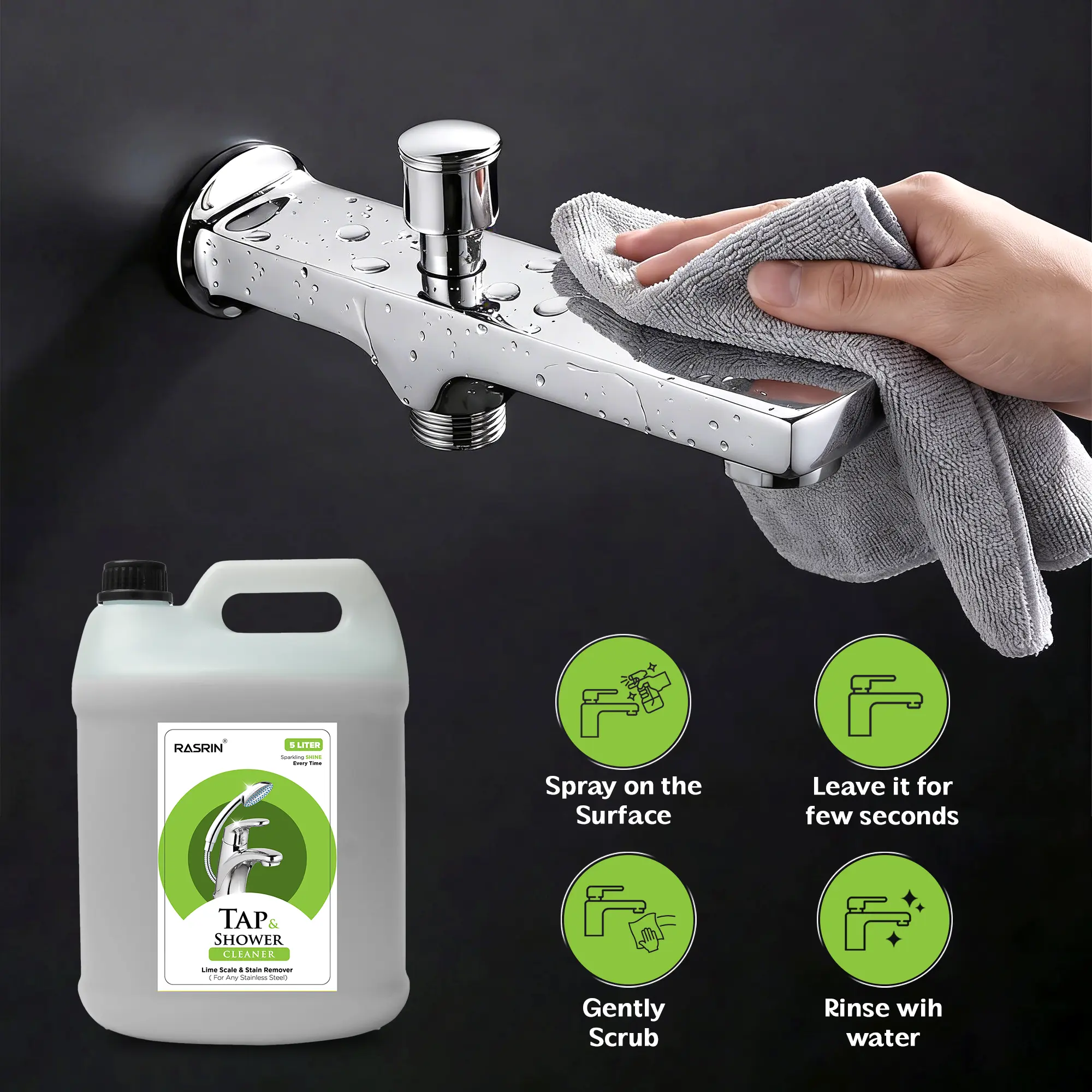 How to Use RASRIN Tap & Shower Cleaner