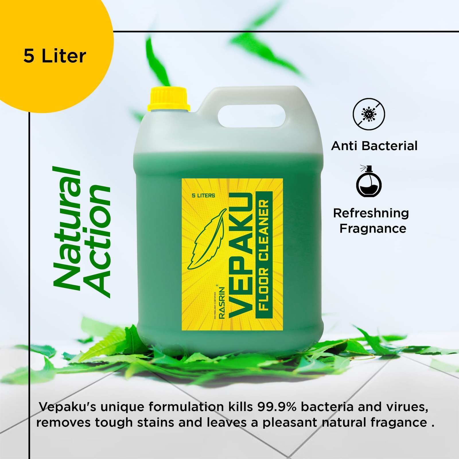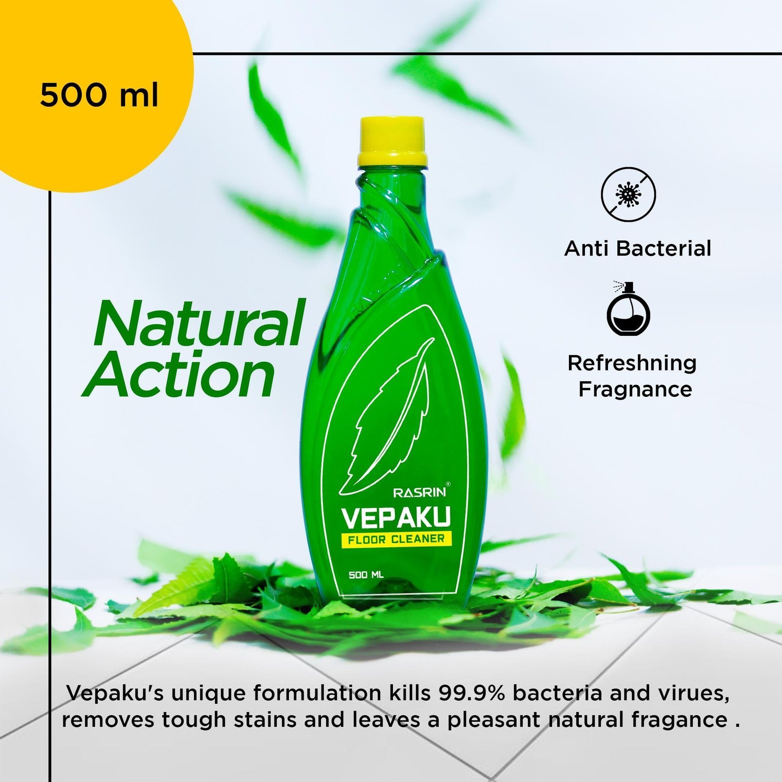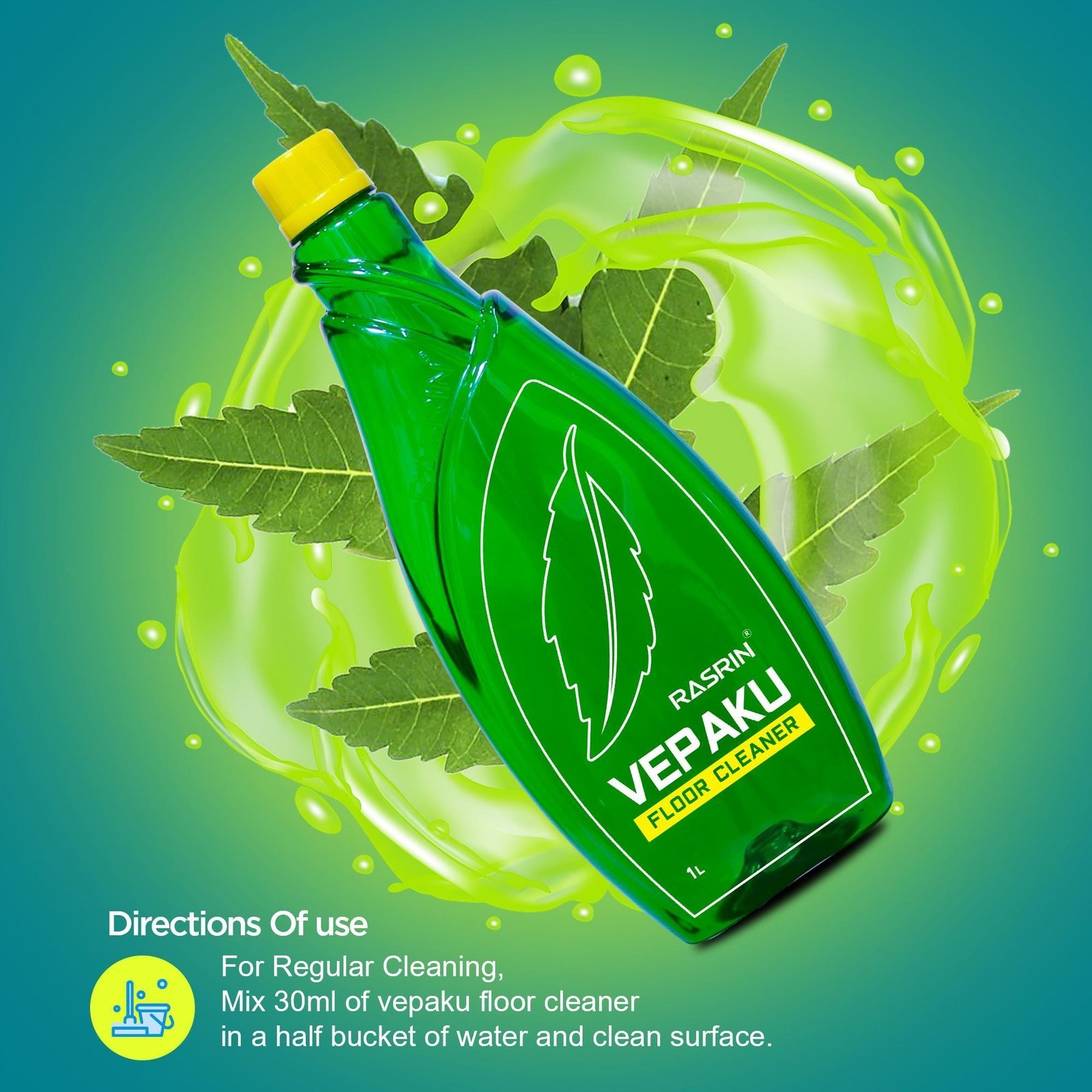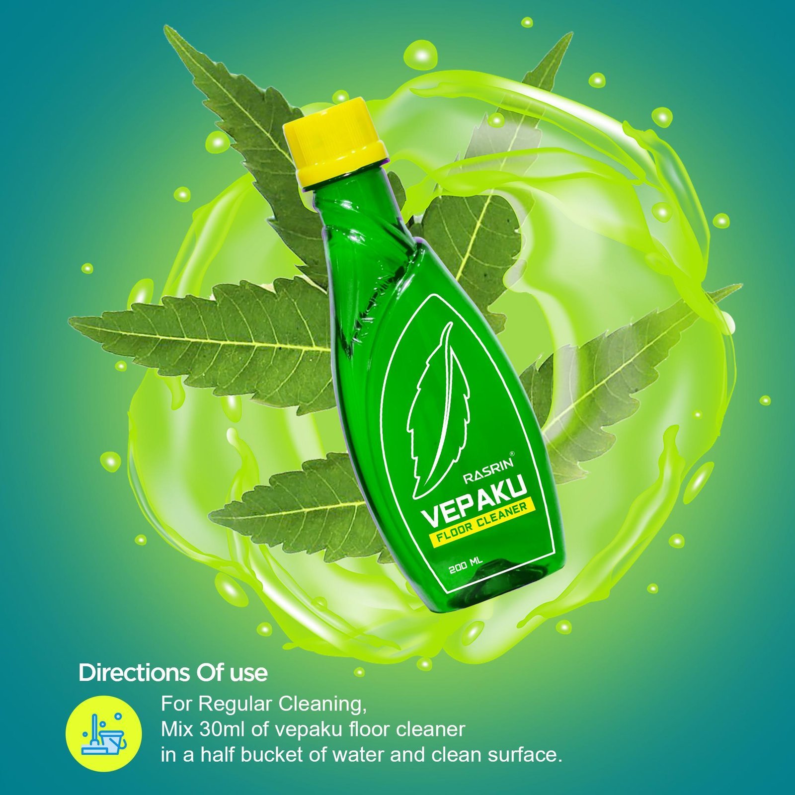 Introducing our brand new floor cleaning liquid Rasrin Neem Floor Cleaner which is a neem extract. It contains the unique formula of Vepaku that kills 99.9% of Bacteria and Virus. Rasrin Vepaku Floor Cleaner helps in removal of tough stains and leaves a pleasant natural fragrance. Our floor cleaners’ natural formulation helps in keeping your hands safe. Can be used on a variety of surfaces like ceramic, marble, granite, etc.