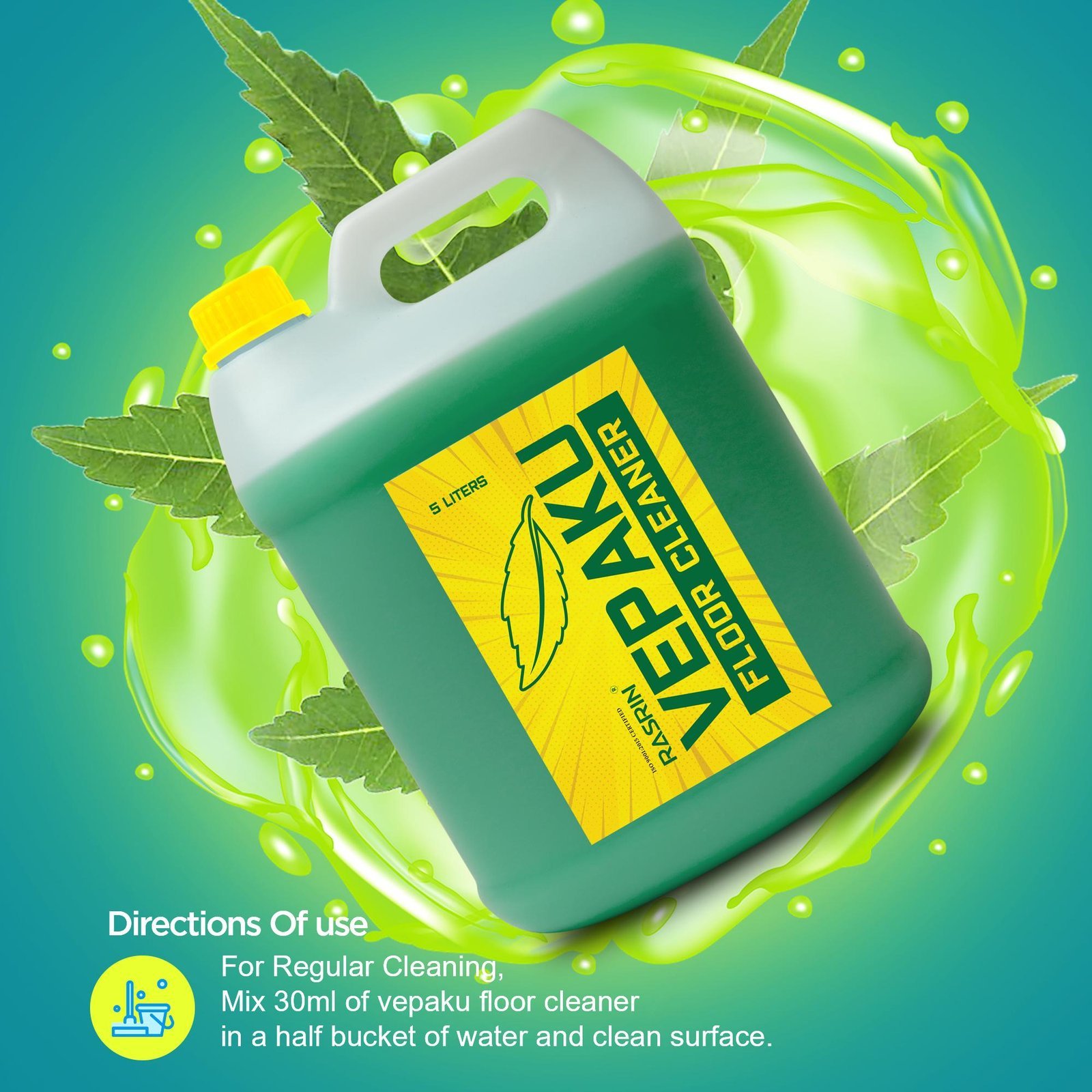 – For Regular Cleaning, mix 30ml of Vepaku floor cleaner in a half bucket of water and clean the surface. Or use directly or diluted for regular use, safe for cleaning all kinds of surfaces
